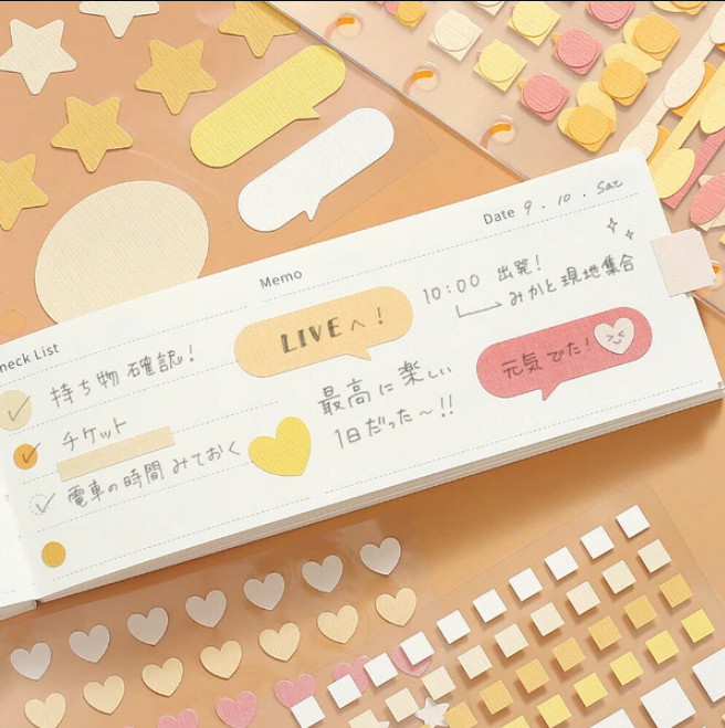 A BGM matrica csomaga ideális buller journalhoz, kreatív naplózáshoz, scrapbookhoz is. A 6 íven összesen 528 kisebb matricát találsz, geometria formákat, szíveket, csillagokat, szövegbuborékokat ábrázolnak. Több színben is kapható. A matricák papírból készültek, így akár írhatsz is rájuk.