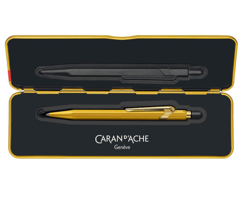 A híres Caran d'Ache 849 golyóstollak tiszeletére lett létrehozva a "Goldbar" golyóstoll. Brilliáns, különleges külső, amely minden gyűjtő kollekciójába egyedi darab lehet. Hexagonális, könnyű aluminium tolltest, amely kényelmes fogást biztosít. Kék tintapatron, amellyel kellemes, folyamatos az írásélmény.