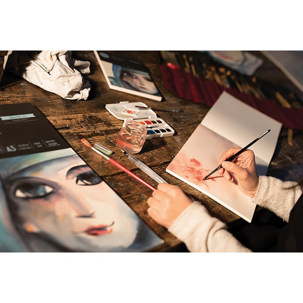 Az Imago az olasz MUSA száraz technikákhoz készült vázlatfüzet szériája. 105 g/m²-es papírja kiválóan alkalmas grafit- és tusrajzokhoz. A természetes fehér, egészen finoman texturált papíron gyönyörűen és egyenletesen fogsz tudni dolgozni színes ceruzáiddal. Savmentes és pH semleges papírja időtálló, strapabíró, jól bírja a radírozást, így a hibáid eltüntetése miatt sem kell aggódnod. Műveidet kemény borító védi, örök klasszikus fekete színben, csúszásmentes textil hatású textúrával. Hátulját gyönyörű gyöngyház magenta logó díszíti.