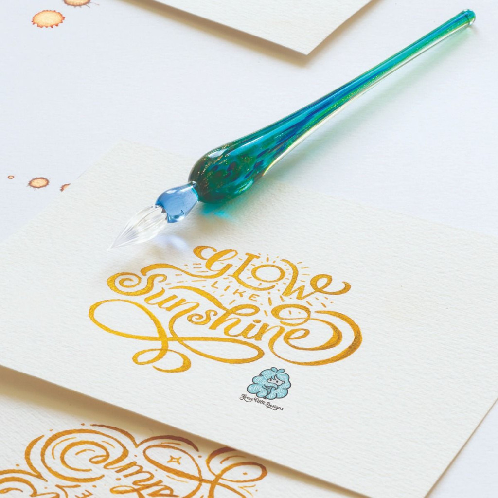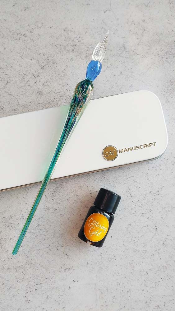Próbáld ki a kalligráfiai kézírásodat az arany csillogó tintával, tölts le egy ingyenes ábécét, és tárold biztonságosan a Manuscript gyönyörű fém tolltartójában.