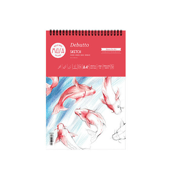 A Musa Debutto vázlattömb kiváló ár-érték arányi miatt tökéletes választás kezdőknek, diákoknak. 120 g-os, sima felületű papírja ideális száraz technikákhoz. Spirálozott, így könnyen kitéphetők és eltávolíthatók a rajzok a tömbből.