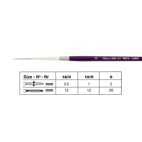 A Silver Brush prémium Silver Silk ecsete az egyik legjobb minőségű szintetikus ecset. Ideális vizes technikákhoz, például akril, gouache, akvarell. Különlegességük kimagasló nedvszívó képességük, amelynek köszönhetően rengeteg színt tudnak megtartani magukban. Puhák, és hajlékonyak, mégis remek a formatartásuk és igazán könnyen kontrollálhatóak. Az ecsetek strapabíróak, hosszú életűek. Az író, vagy ágfestő ecsetek ideálisak haj, botanikus formák, hosszú vonalak festéséhez.