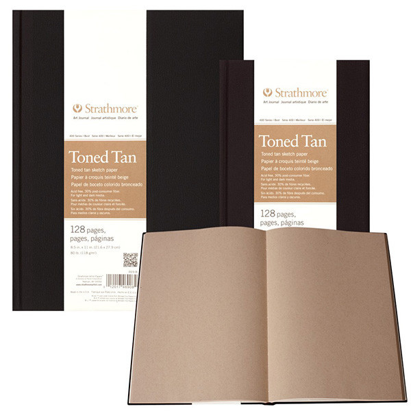 Az Art Journal Toned Tan változata barna színű rajzpapírokat tartalmaz. Ideális grafithoz, szénhez, színes ceruzához, markerekhez, zselés tollakhoz is. A szürke háttérnek hála igazán különleges hatásokat, kontrasztokat lehet elérni rajta. 64 db, 118 g-os lapokból áll.  A4-es és A5-ös változatokban. Felülete szinte teljesen sima. 100%-ban újrahasznosított, savmentes papírból.
