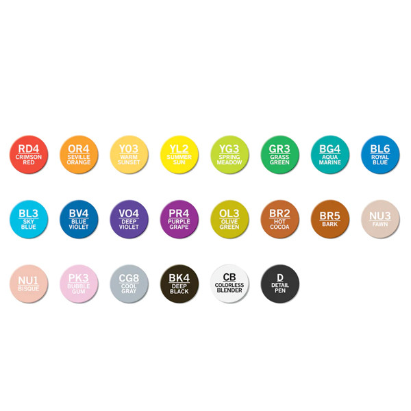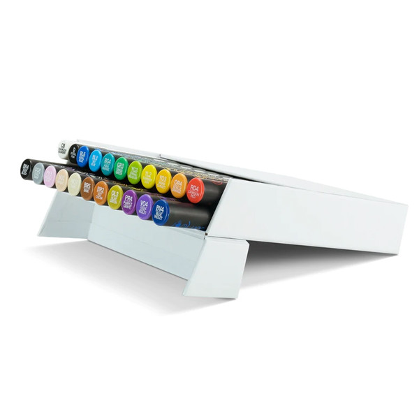 A készlet 22 db Color Tones markert, 1 db tűfilcet és 1 db szín összemosó tollat tartalmaz. Ajándék csereheggyel és hozzá csipesszel, valamint angol nyelvű útmutatóval, ötletfüzettel. Válassz hozzájuk a különböző Color Tops készletek közül, hogy még több lehetőséged legyen a színekkel való játékra!
