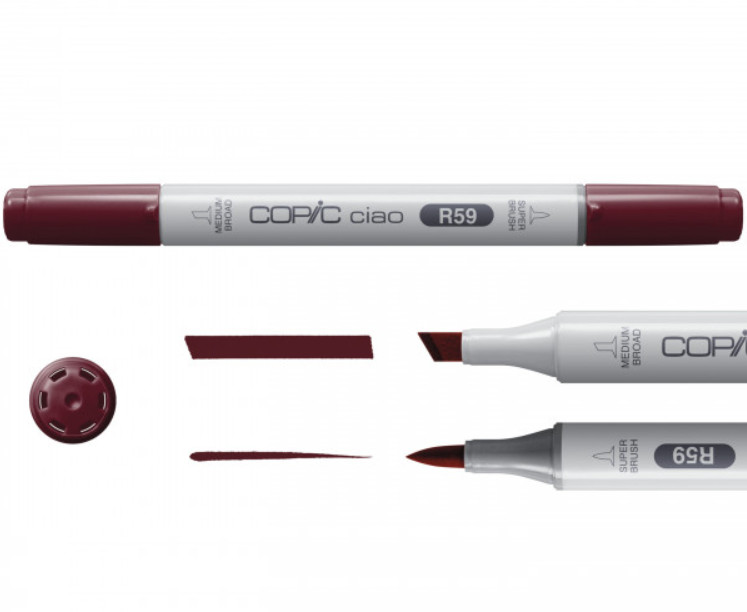 A Ciao széria 180 színben érhető el, egy ecsetvégű és egy közepes vágott heggyel. Kiváló minőségű ecsethegye puha és hajlékony, így rengetegféle vonalvastagsághoz alkalmas, míg vastagabb vágott vége tökéletes precíz, egyenes vonalakhoz, valamint nagyobb felületekhez  színezéséhez is. A Copic Ciao markerek tervezésénél a megfizethetőség volt a fő szempont, ezt a markerek testének kialakításával érték el, a tintájuk és a hegyük minősége viszont maradt az eredeti Copic kiválósága.