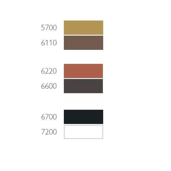 • A 6 db-os kiszerelés az alábbi árnyalatokat tartalmazza: 5700 Brown Ochre, 6110 Sepia (piros), 6220 Sanguine, 6600 Chocolate, 6700 Ivory Black és 7200 Chinese White.