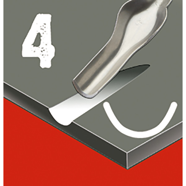 No. 4 - Egy széles, lekerekített 'V' alakú kés, kb. 3 mm-es metszésekhez. Kiváló választás érzékeny részletek, és vékony vonalak metszéséhez, amelyek nagyobb üres felületen találhatóak.