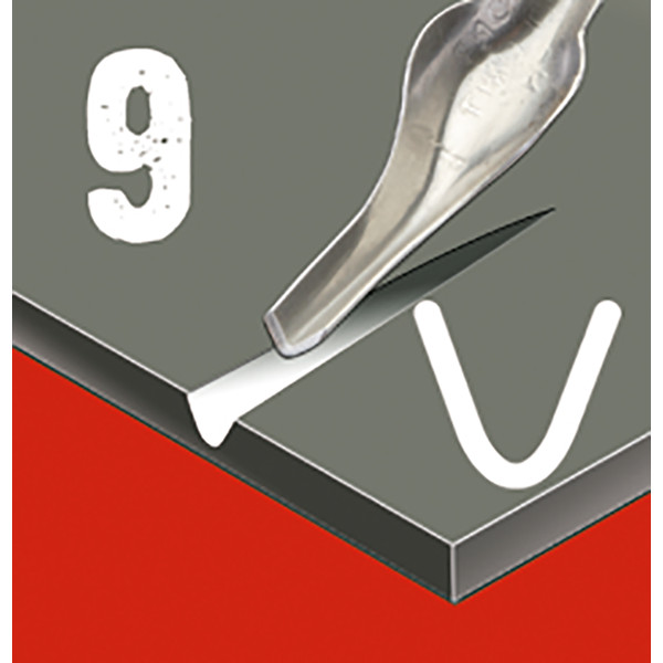 No . 9 - Vékony, de mély kés, ideális keskeny vonalakhoz. Könnyen használható, nem csak linóhoz és softcut-hoz, hanem keményebb anyagokhoz is.