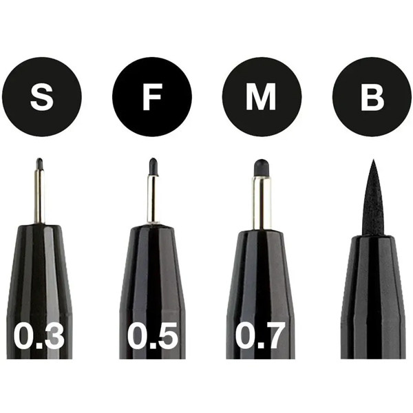 • 3 db fekete tűfilc (S: 0.3 mm, F: 0.5 mm, M: 0.7 mm)