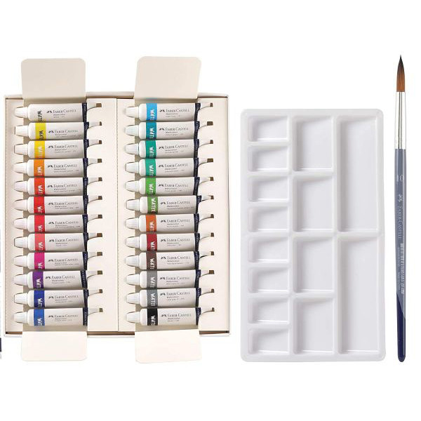 A Faber-Castell tubusos akvarellfesték tökéletes választás nem csak azoknak, akik már ismerik és szeretik az akvarellfestést, hanem kezdőknek is. A festékeket kiváló minőségű pigmentekből készítik. A színei élénkek és remekül keverhetők egymással, tökéletesen feloldhatóak. A készletben 12 db 9 ml-es tubusos akvarellt, valamint egy műanyag palettát találsz.