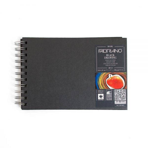 Fabriano fekete rajzkönyv, spirálozott, 190g/m², 40 lap
