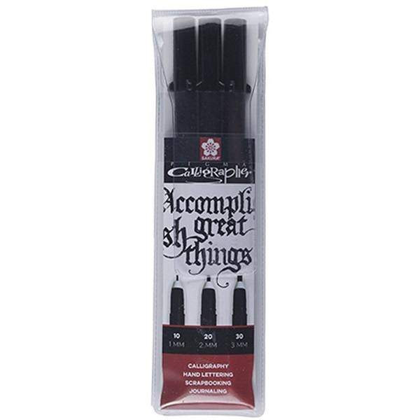 A Pigma Calligrapher egy egyedülálló, tartós kalligrafikus toll. Használatával elfelejtheted a tintatöltögetést és a tollhegy állandó cseréjét: ebben a tollban minden egyben van. Kemény hegye ellenáll az erős nyomásnak és a folyamatos igénybevételnek is, és állandó minőséget hoz, megbízható, egyenletes tintaáramlással, vonalról vonalra. A Pigma Calligrapher vágott végű toll három hegyméretben érhető el: 1, 2 és 3 mm-es szélességben, és akár egy készletben is megvásárolhatod mindhárom tollat.