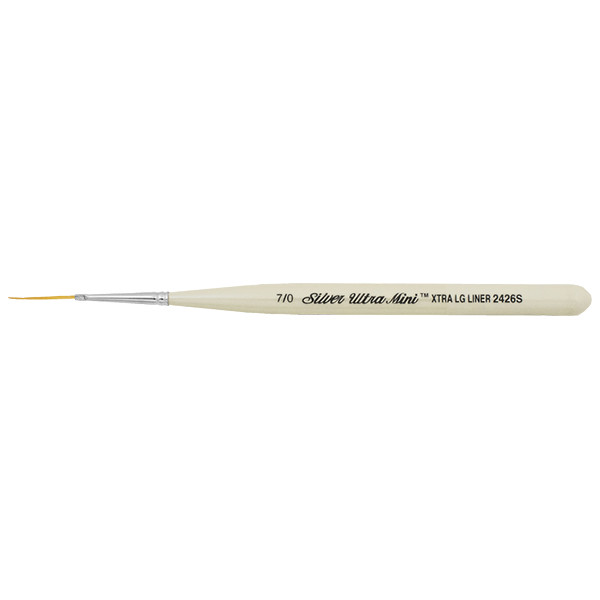 A Silver Brush Ultra Mini szériáját kifejezetten az apró részletek, hajszálvékony vonalak festéséhez alkották meg. Rövid, ergonomikus kialakítású nyele is segít benne, hogy a legapróbb részeket is kényelmesen megfesthesd! Könnyen kontrollálható, precíz. Szintetikus, golden taklon, ecsetek. A készlet több különböző kialakítású ecsetet tartalmaz. Találsz benne két méretet (20/0 és 10/0) script liner, vagyis 'betűíró' ecsetből, egy darabot (7/0 méret) az Xtra Long Liner, extra hosszúságú betűíró ecsetből, és egyet (20/0) a Monogram Liner ecsetből. Ezek mindegyike tökéletes választás hajszálvékony vonalakhoz, részletekhez, a különbséget főként a szálak hossza adja, hogy minden esetre megtaláld a neked legjobban megfelelőt!