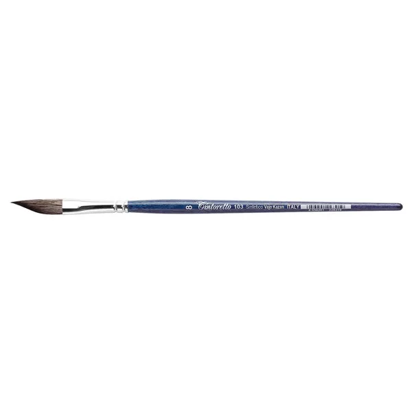 A Tintoretto 103-as szériájú ecsete szintetikus szálakból készült, azonban mégis egy igazán kiváló imitációja a mókusszőr ecseteknek, nem csak kinézetben, hanem tulajdonságaiban is. Az ecsetek nagyon puhák, és remek a szín-és vízmegtartó képességük. Rendkívül jól őrzi formáját, amely miatt rengetegféle módon használható. Tökéletes választás vizes bázisú festékek használatánál, vagy akár kerámiák festéséhez is. Kard fejű ecset, 4 különböző méretben.